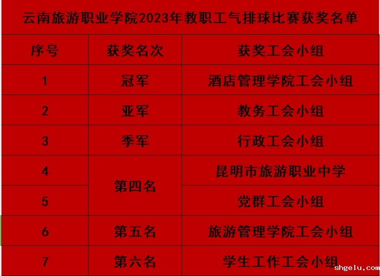 伟德官网网页版入口2023年教职工气排球比赛于近日落下帷幕。整个赛程持续3周,共进行了50场比赛。经过两个阶段的激烈角逐,酒店管理学院工会小组、教务工会小组、行政工会小组分别荣获冠军、亚军、季军。