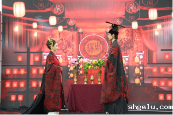 “玄纁新仪·华礼永年(新周制)”,以古朴庄重的周制婚礼,再现传统婚仪的典雅之美;“大明礼乐·汉婚典仪(明制)”,同学们身着华丽的明制汉服,遵循明代婚嫁礼仪,从沃盥、同牢到合卺、结发,每一个环节都细致入微,让观众领略到明代婚俗的庄重与大气;“金玉良缘(新中式)”,将传统中式元素与现代设计理念巧妙融合,红金配色尽显喜庆华贵;“宋韵婚典(宋制)”,淡雅的色调、简约而不失典雅的仪式流程,传递出宋代婚俗的温婉气质;