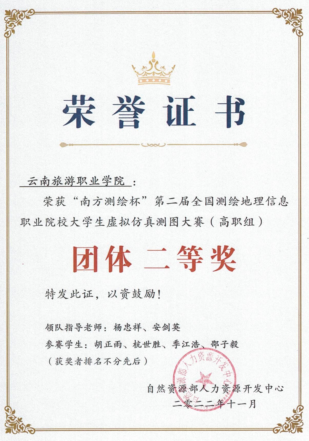 近日,自然资源部人力资源开发中心《关于公布“南方测绘杯”第二届全国测绘地理信息职业院校大学生虚拟仿真测图大赛获奖结果的通知》公布,我院资源工程学院派出参赛的两支队伍4名同学,经过激烈角逐,分别获得一等奖和二等奖,学院荣获团体二等奖的好成绩。