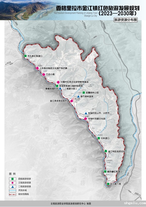 根据规划,金江镇将以红色旅游为主要载体,把革命传统教育与旅游开发有机结合,通过基础建设改善区域生态环境和人居环境,加强对红军长征精神文化遗产的有效保护和合理利用,完善红色旅游产品体系,推进旅游人才队伍建设,通过政府组织引导、社区积极参与和市场有效运作,将对促进金江镇经济建设、文化建设和生态建设起到助推作用。与此同时,本次《香格里拉市金江镇红色旅游发展规划》的编制,也为我校利用教育科研优势资源服务社会、促进乡村振兴积累了值得推广的实践经验。