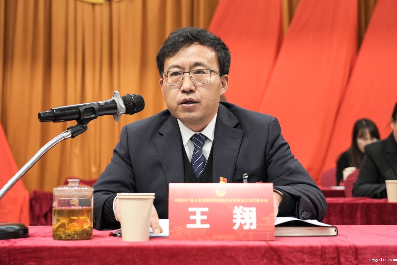 党委书记王翔代表学院党委对出席大会开幕式的高校代表表示真诚的感谢,对大会的召开表示热烈祝贺,对学院共青团的工作给与高度肯定。他表示,学院党委始终关心和重视青年工作,始终关注和支持学院共青团工作,对上一届学院共青团组织团结带领广大青年所推进的改革、所成就的事业、所呈现的面貌表示充分肯定,对各级团干部和广大团员青年所展现出的热爱、担当与奉献表示高度认可。最后,他代表学院党委向我校共青团组织和广大团员青年提出三点希望:一是要有“任尔东西南北风”的定力,打牢政治根基。打牢政治根基,需要强化党的领导,做到党旗所指、团旗所向;需要强化理想信念,做到坚定坚守、矢志不渝。二是要有“直挂云帆济沧海”的气魄,强化使命担当。强化使命担当,需要服务国家战略,为全面推进乡村振兴、服务云南文化旅游双强省建设不懈奋斗;需要服务学院建设,为全面建设特色鲜明的高水平职业院校而不懈奋斗。三是要有“打铁还需自身硬”的自觉,突出能力建设。建设突出能力,重在创新实干,要在强化自身建设中纵深推进共青团改革;重在从严治团,要在自我革命中锻造优良作风。