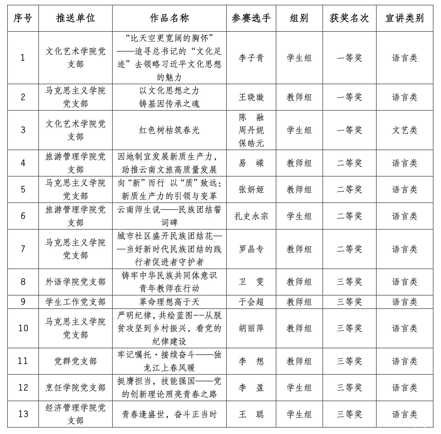 2024年伟德官网网页版入口“云岭师生说”理论宣讲比赛获奖名单