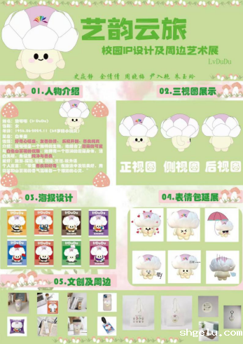 在为期一周的展览中,各小组同学围绕校园IP形象精心设计制作了各类周边产品,涵盖了挂件、海报、文具、服装、冰箱贴等多个品类。同时,为了增强活动的互动性与参与度,活动还开放了线上投票通道,邀请全校师生为喜爱的校园IP 形象及周边作品投票助力。截止到活动结束,累计共有 11340 人次参与投票,活动反响热烈。